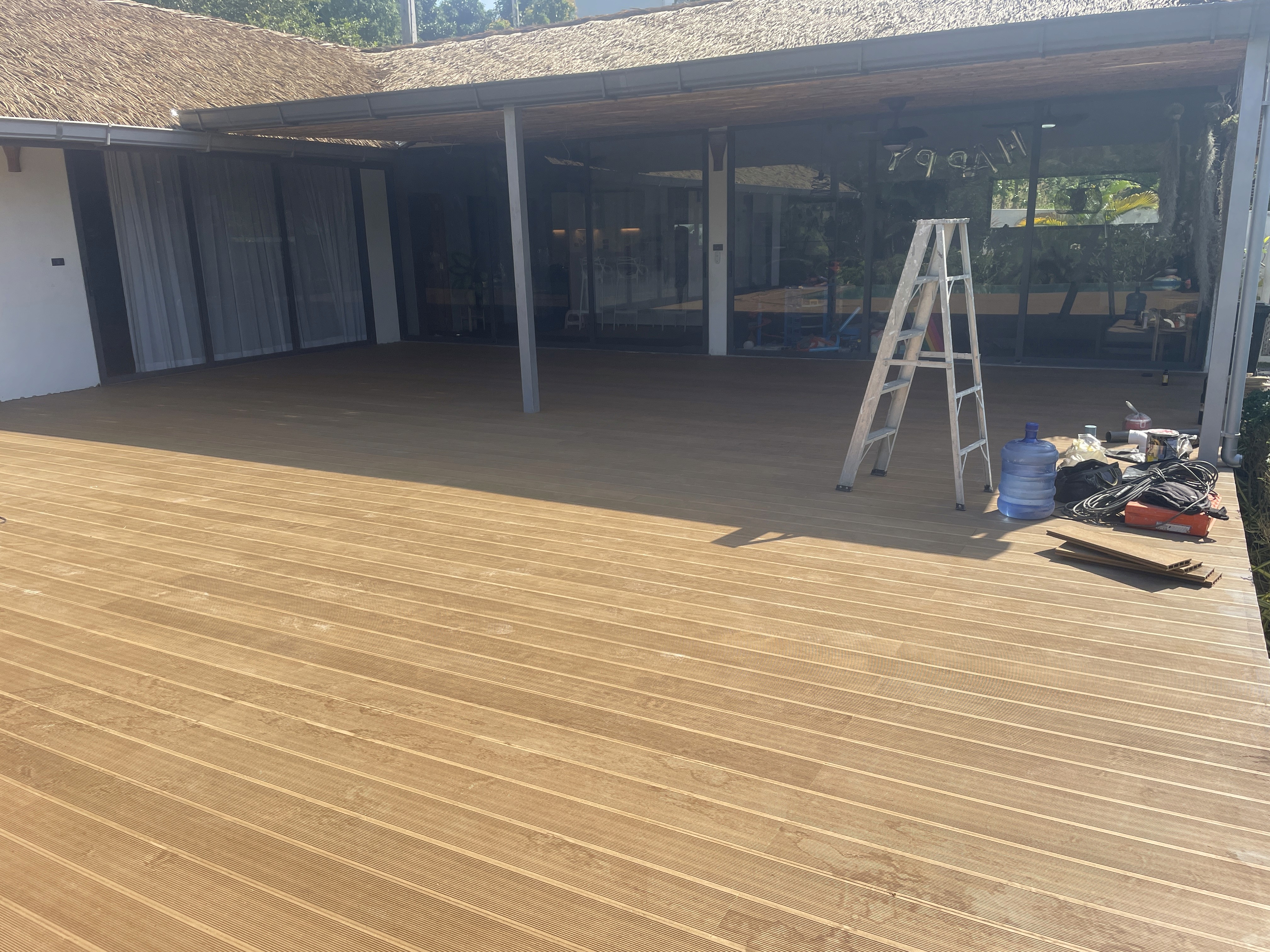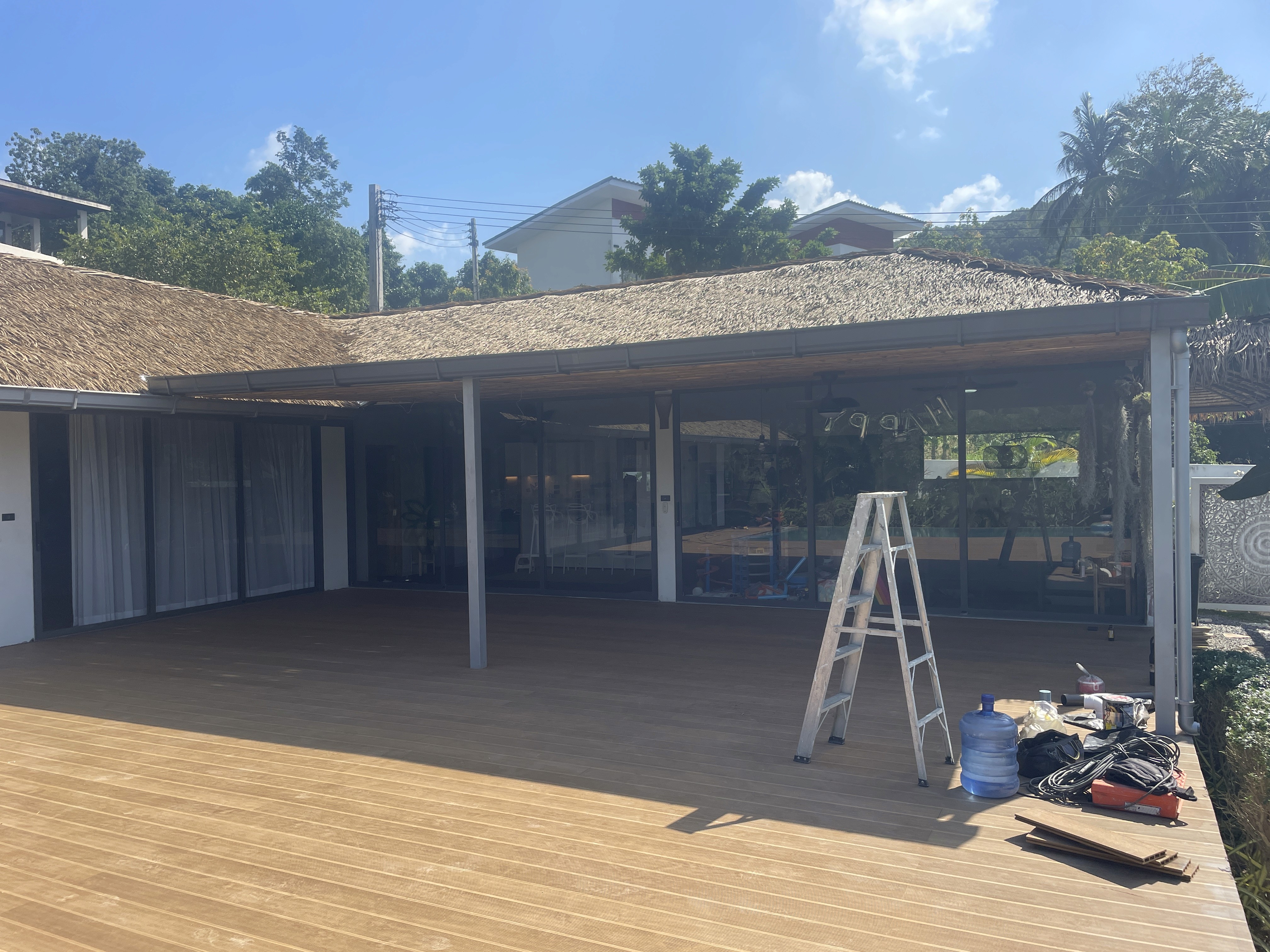 The renovation included structural adjustments, installation of a new terrace roof, and upgraded finishing materials. Careful workmanship ensured the terrace structure remains durable and suitable for long-term use in the tropical environment.